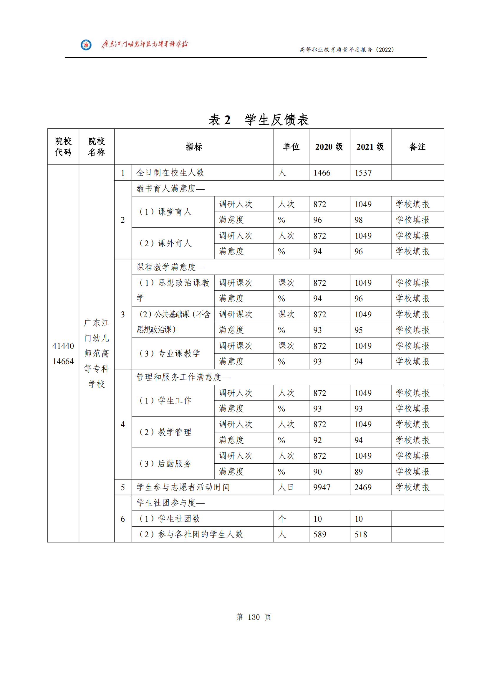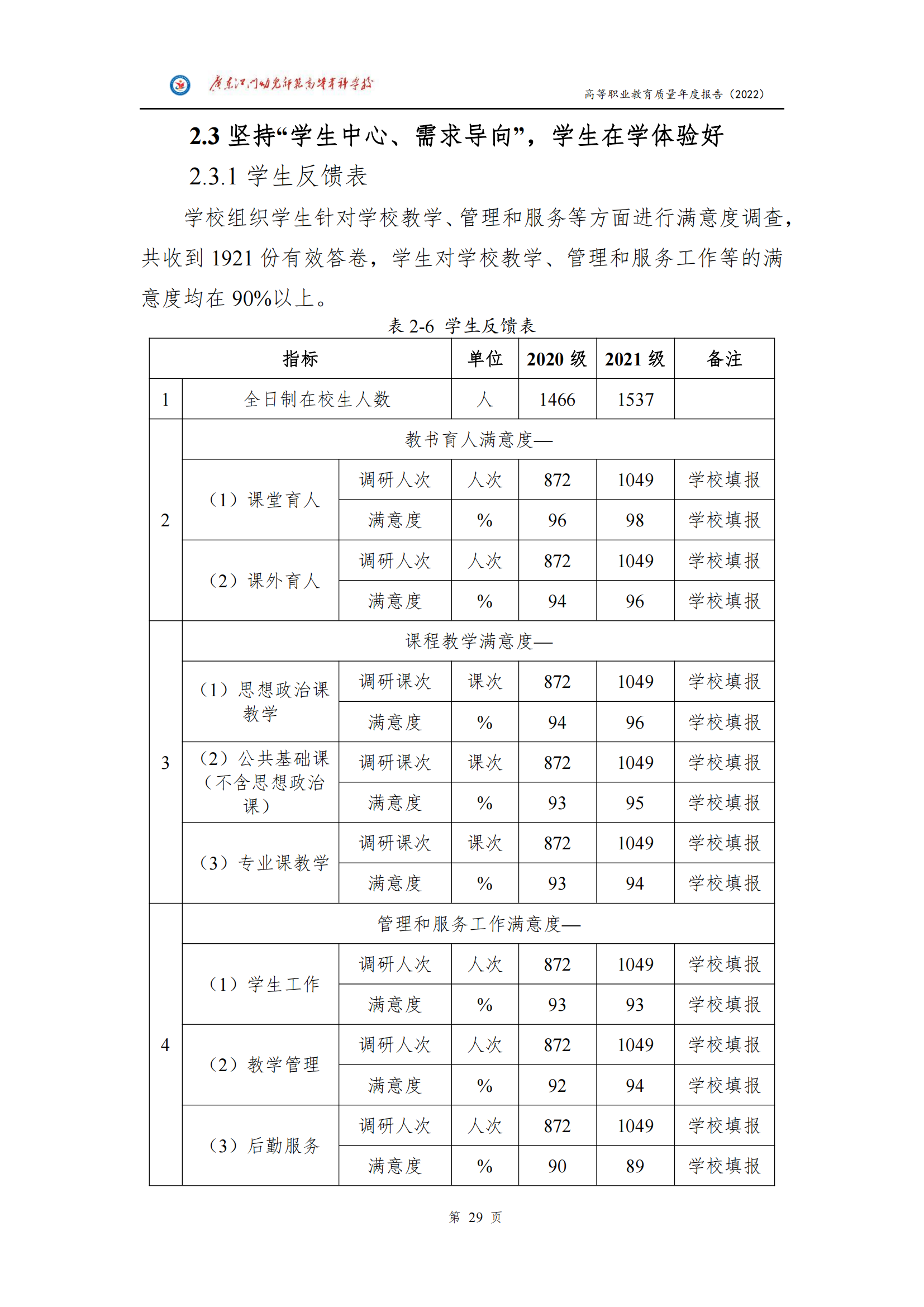 教学质量信息